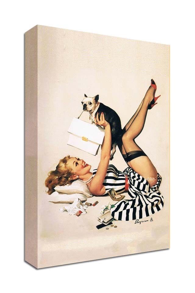 Blonde Pin up with Pug CANVAS | LARGE WALL ART | vintage pug smile dress cute