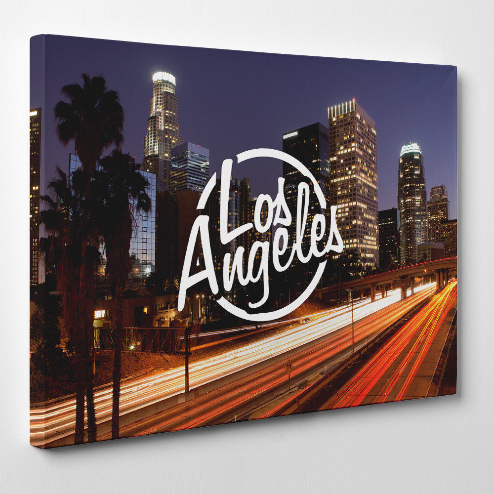 LA Retro circle font USA Los Angeles at night – Framed Canvas Art Print