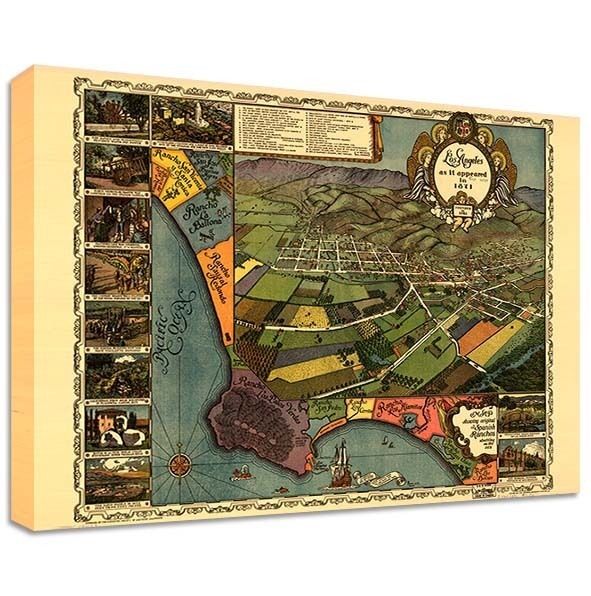 Vintage Los Angeles Map CANVAS | LARGE WALL ART | usa map decorative 1871 LA CA