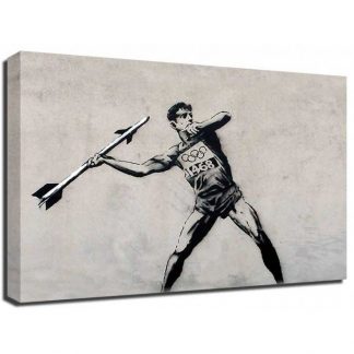BANKSY JAVELIN MISSILE CANVAS | LARGE WALL ART | olympics street graffiti athlet